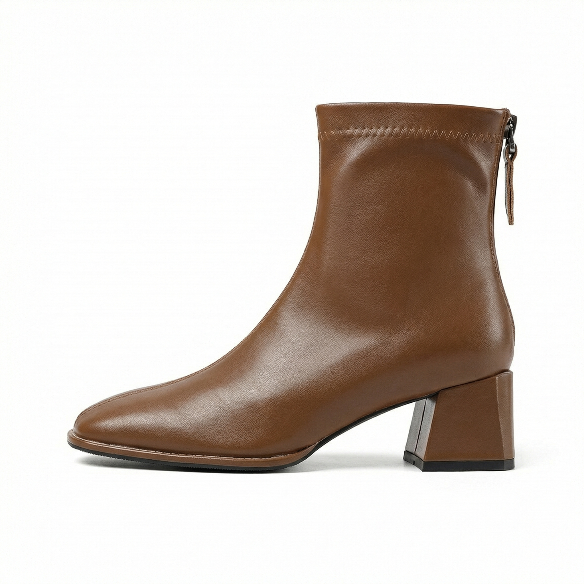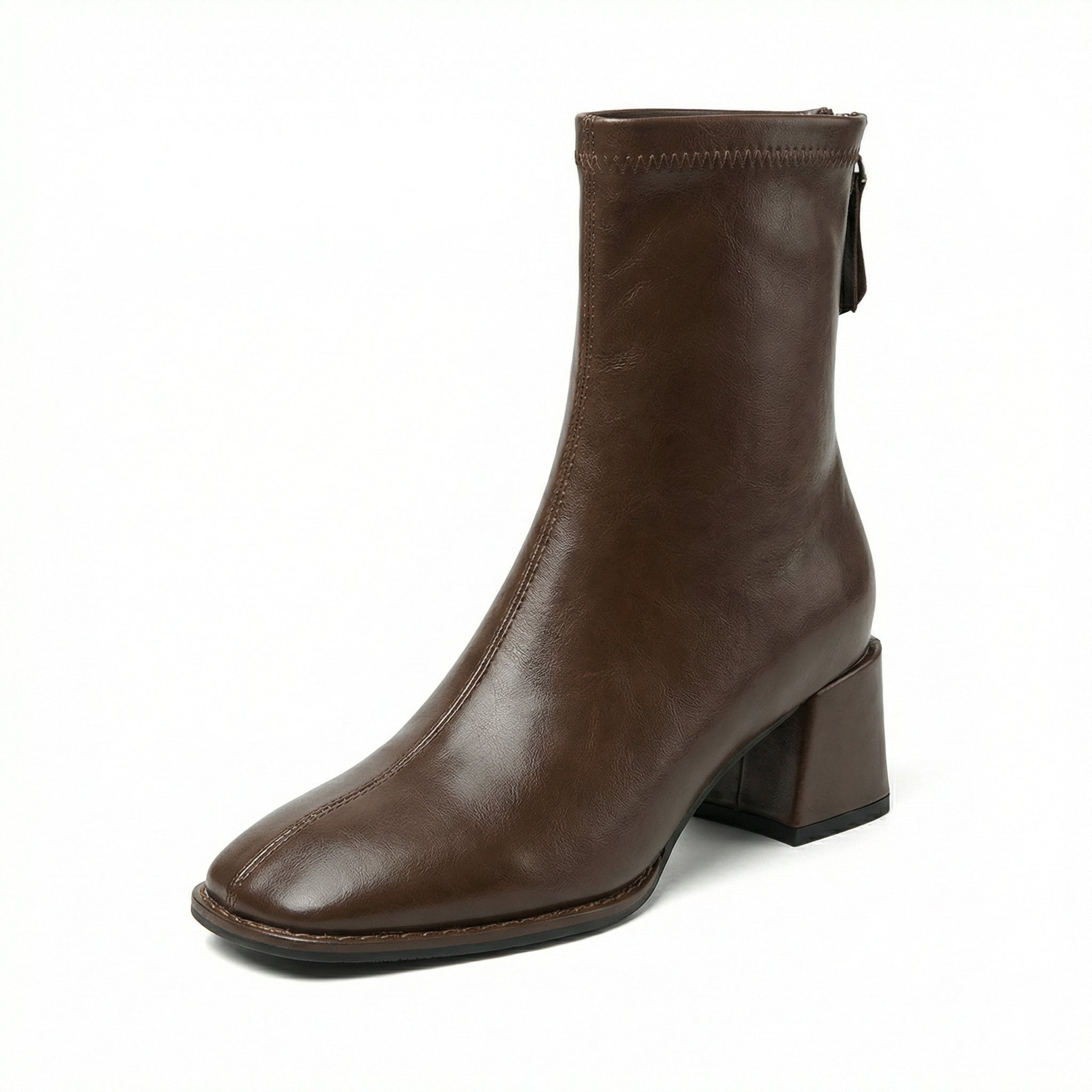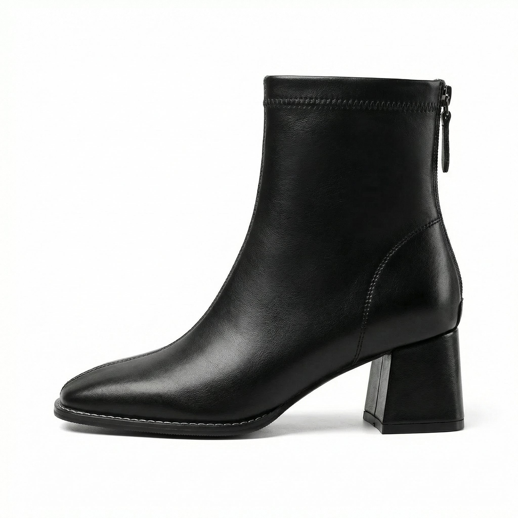 Square Toe Ankle Boots – Mid Block Heel, Side Zipper, Womens Everyday Wear