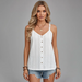 The Lace-Trim V-Neck Tank is a breezy, chic top featuring delicate lace accents that add a touch of elegance and femininity. Its soft, lightweight fabric feels comfortable on warm days, while the flattering V-neckline beautifully highlights your silhouette. The front button detailing adds a classic, versatile touch, making this tank perfect to wear on its own or layered under a jacket or blouse.